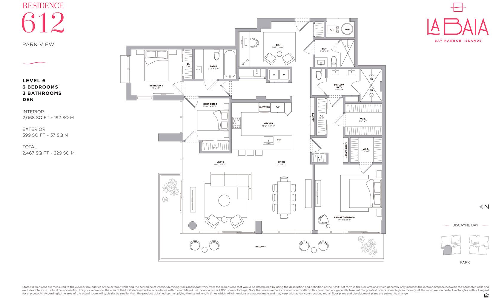 • 2 Beds Residences starting at $1,000,000 with park view and $1,200,000 with water view. Sizes 1331-1860 Sqft.