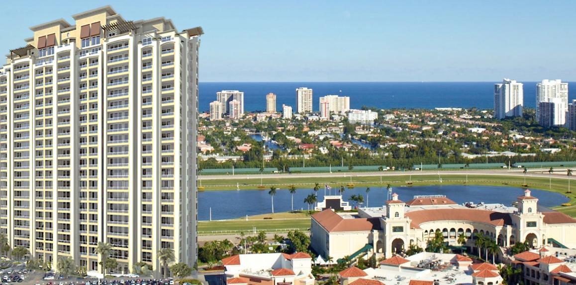 The Gulfstream Park Tower in Hallandale Beach is a 21 story building by The Stronach Group developer with architecture by Behar Font & Partners. As the name of the building suggests, it's located within Gulfstream Park, a “racino” (a casino and racetrack) that's become one of the most important venues in the United States for horse racing. The condominium is comprised of 182 units available with one, two or three bedrooms.